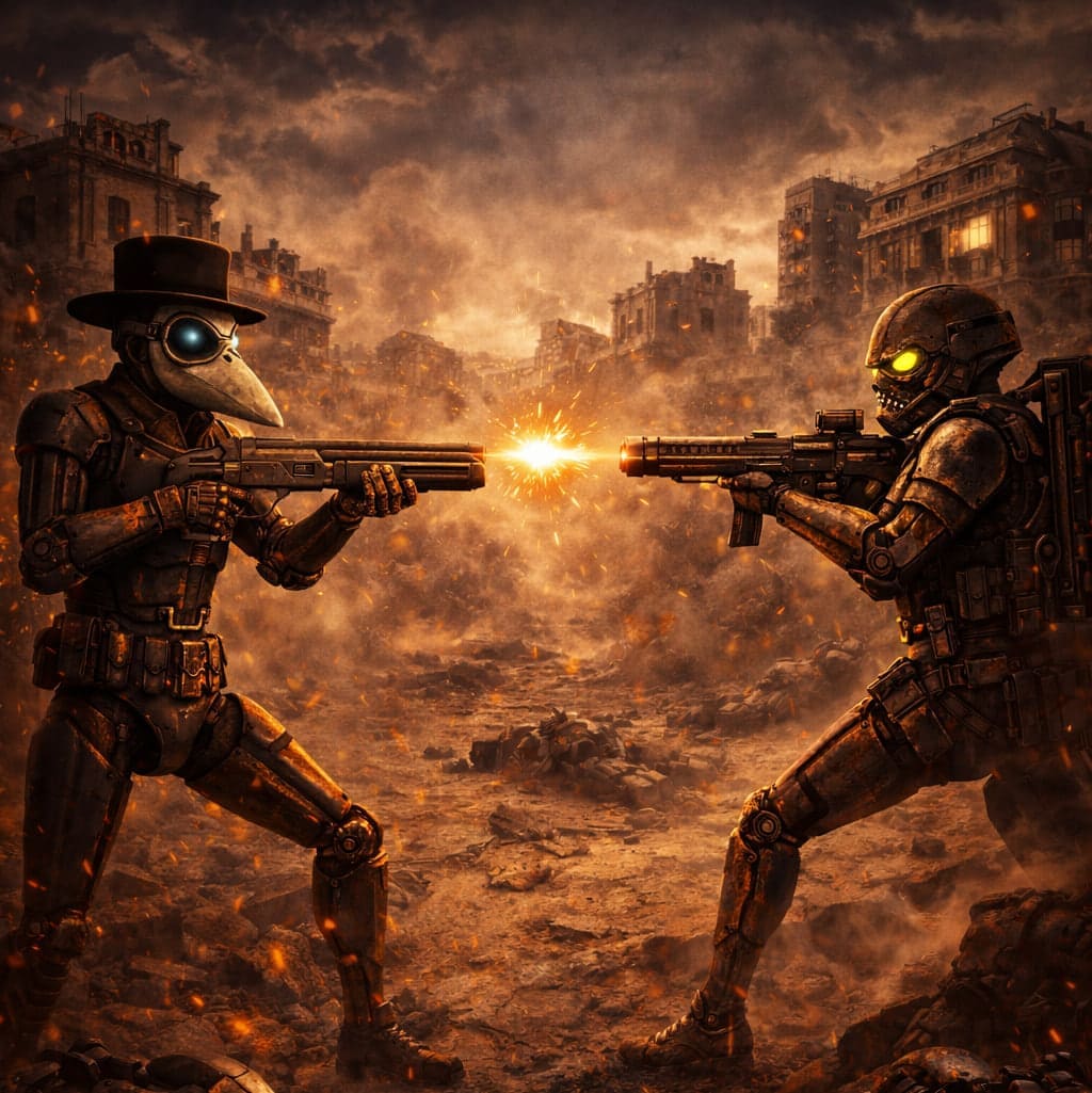 Tactical top-down multiplayer shooter where PvP battles, co-op Zombie Horde, and open-world RolePlay mode collide. Build your combat robot, install implants, and fight other players across a post-human desert wasteland.