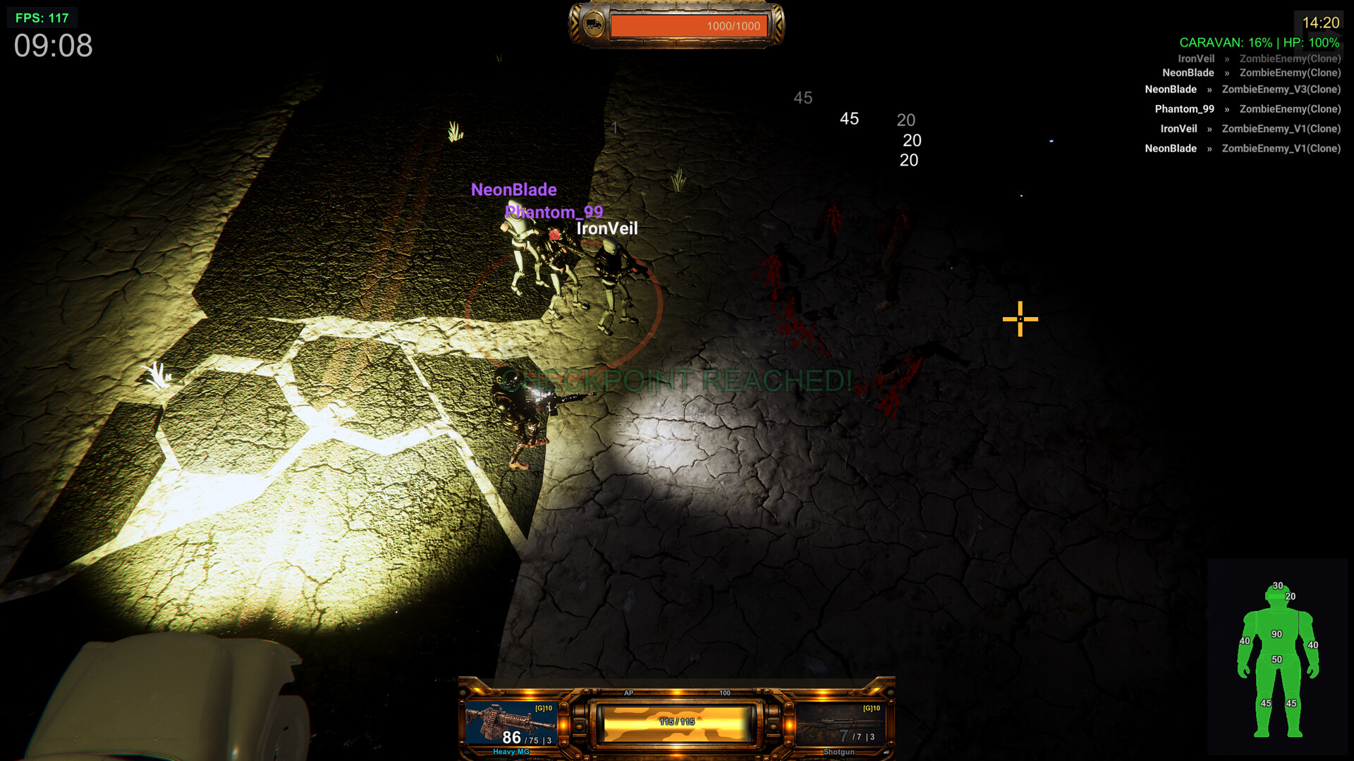 Escort an armored convoy through hostile territory while the AI Director unleashes waves of undead machines, cyborg zombies, and boss mechs. Up to 80 zombies simultaneously. Survive together or fall apart.